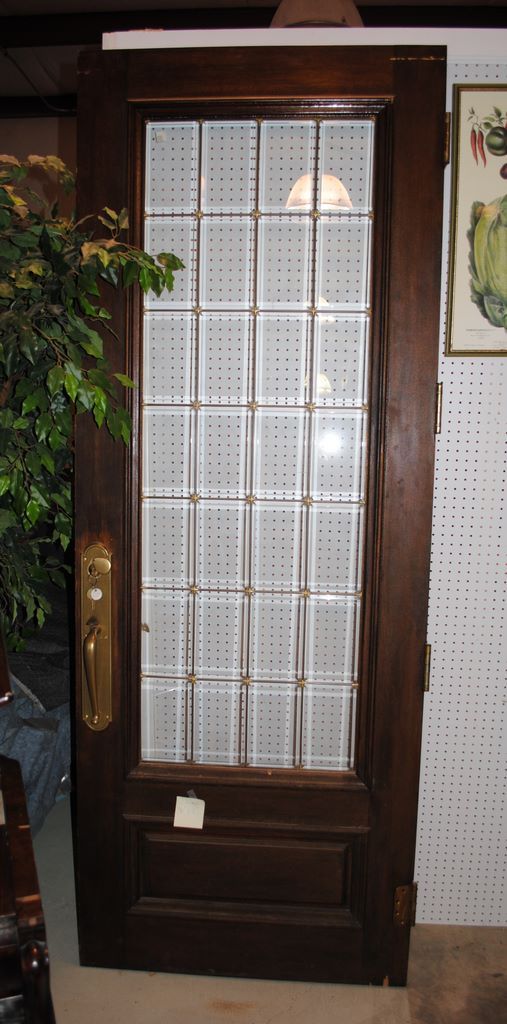 Solid Wood Door w/28 beveled glass panels over wood panel. Great brass hardware. 36"w x 8'h