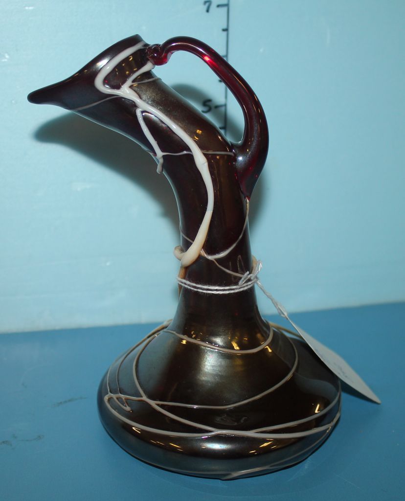 Art Glass Ewer with Applied Swirls