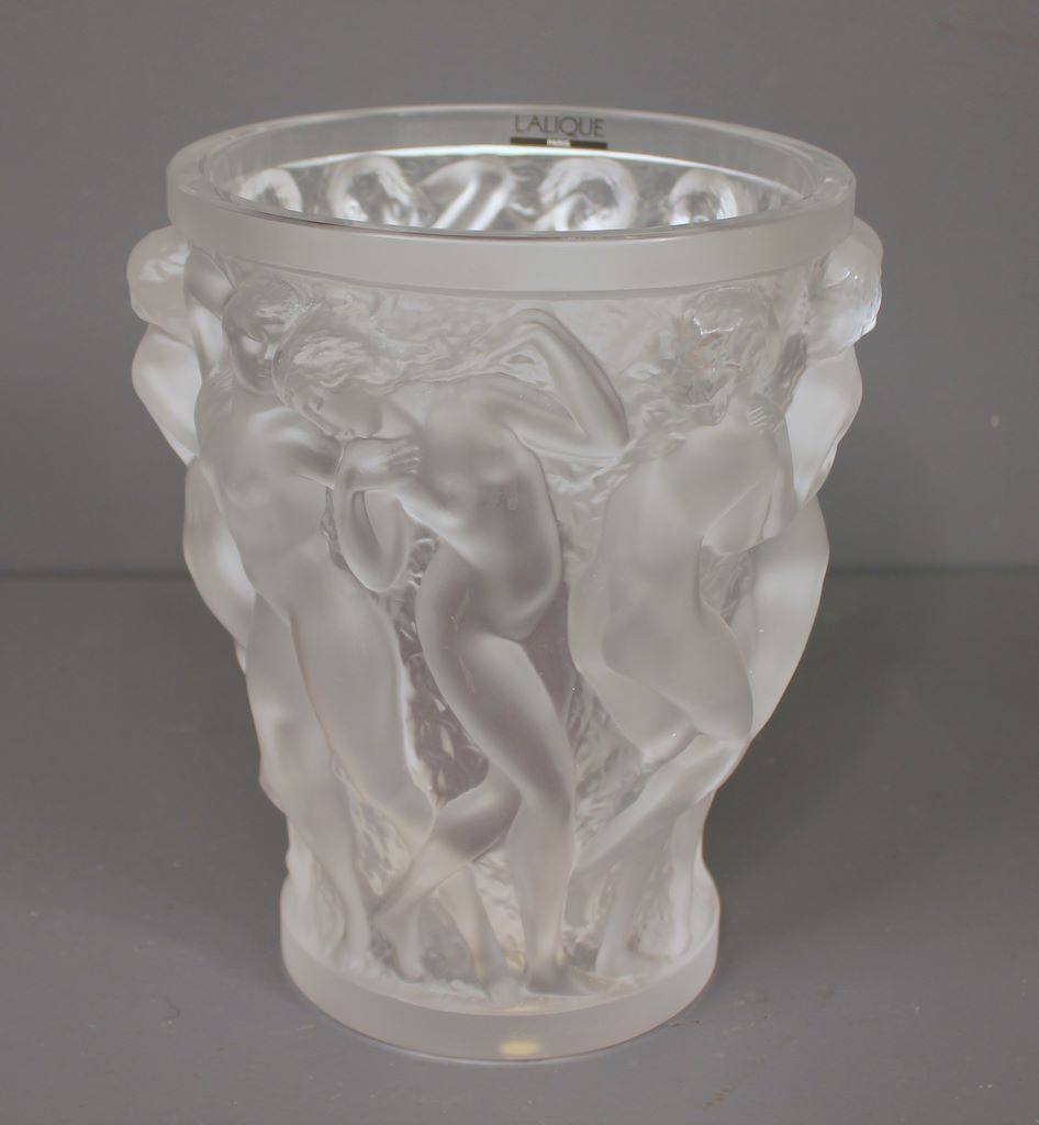 Contemporary Rene Lalique in Original box - Vase Revealing Maidens of Bacchus. 9 1/2"h., 7 1/2" dia.