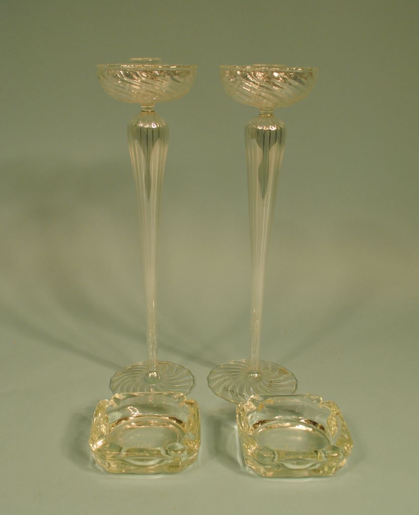 2 Santa Fe Railroad Ashtrays, Pair Murano Tall Candlesticks