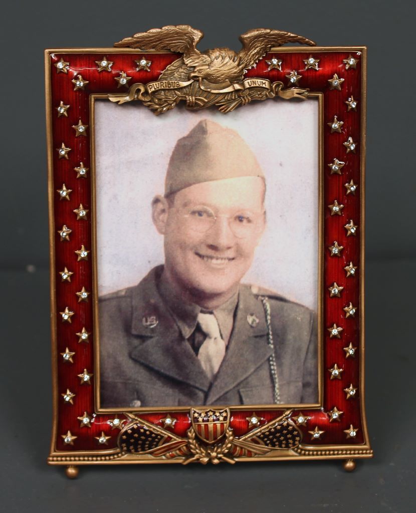 Berebi 24k Gold and Enamel Frame with Eagle, Shield and Flags. 4 1/2"w., 6"h.