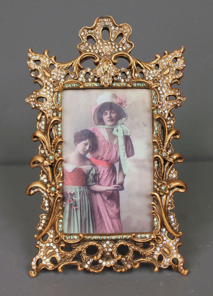 Berebi Green Enamel Frame with Austrian Crystal, 24k Gold Plated. 4"w., 6 1/2"h.