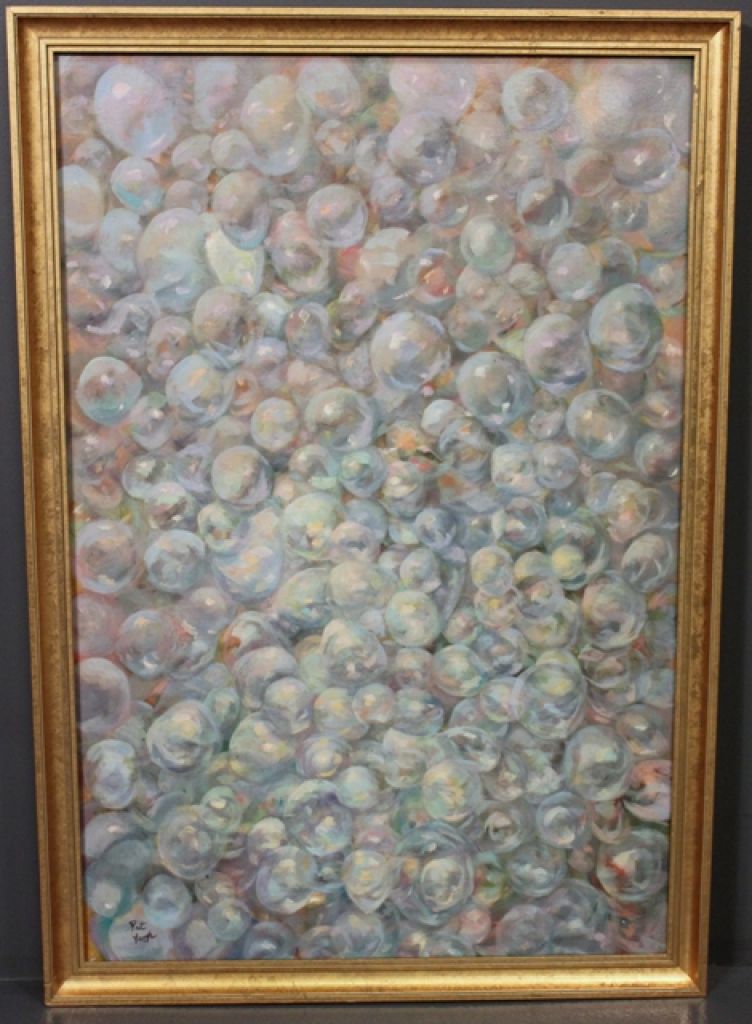 Oil Painting of Balloons or Bubbles, pastel colors. 26 1/2" w., 39" h.