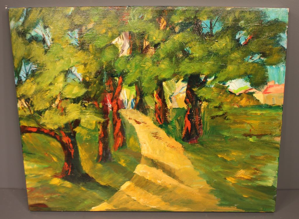 Oil painting of Trail with Trees by Mary P. Buckley. 24"w., 30"h.