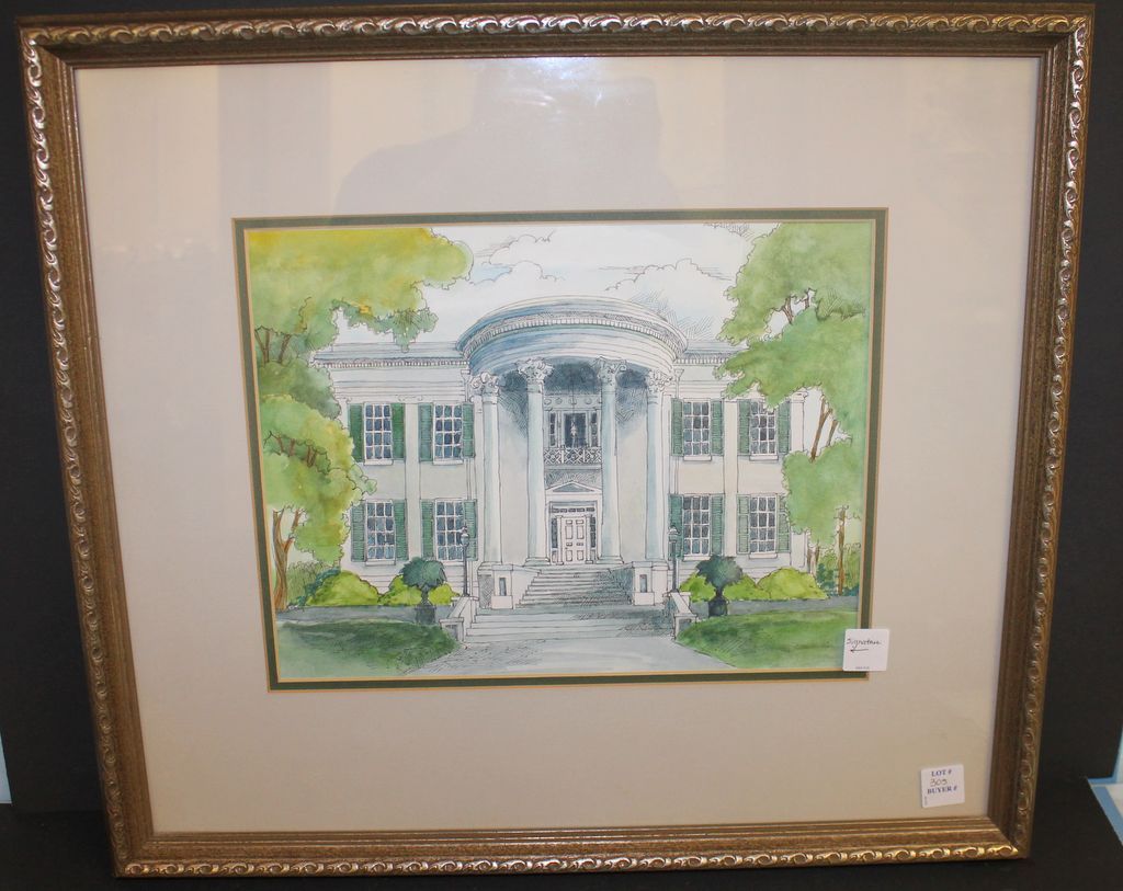 Watercolor of Governor's Mansion. Signed watercolor of Mississippi Governor's Mansion by Zelma McLain, Artist reared in Greenville, Mississippi, 21"w., 19"h.
