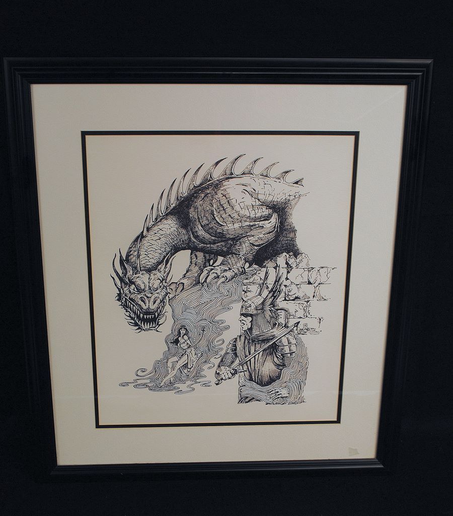 Pen Drawing of Medieval Times done by Local Pearl Artist DeWeese, Signed and Dated.
