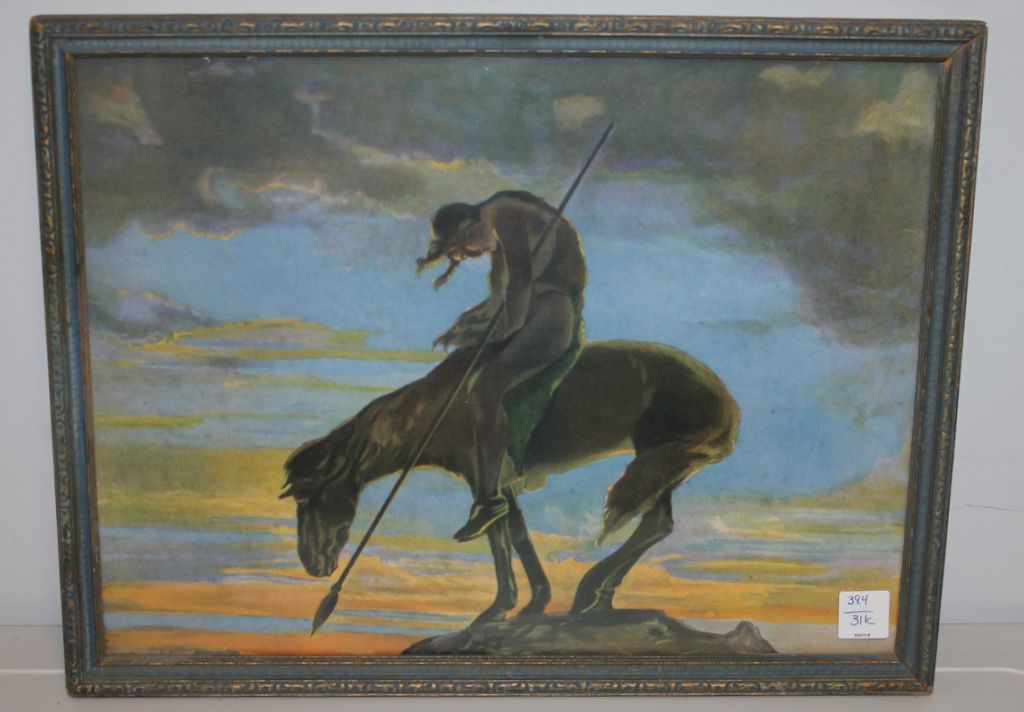 Colortype Print "Indian at the End of the Trail" by Columbia, original 1920's print in original frame; 17" w., 13" h.