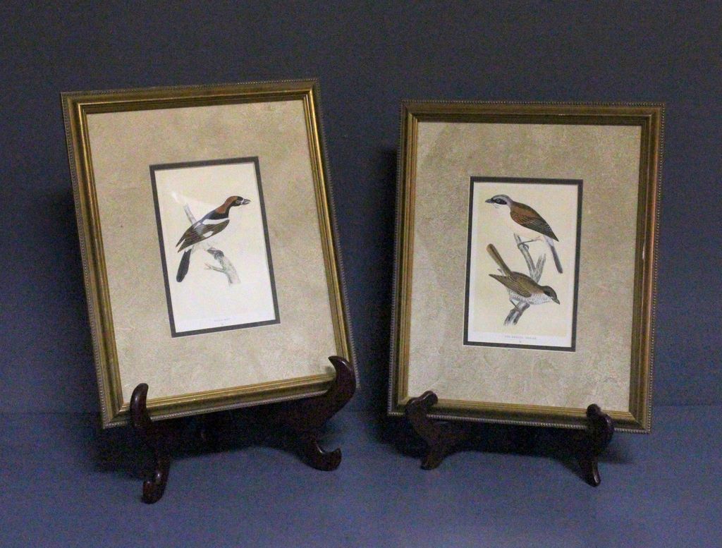 Pair of Hand Colored Prints; two hand colored prints of birds; one is red-back Shrike and the other is a Woodchat. Professionally framed and matted, have certificate of authenticity; 12 1/2" w., 15 1/2" h.