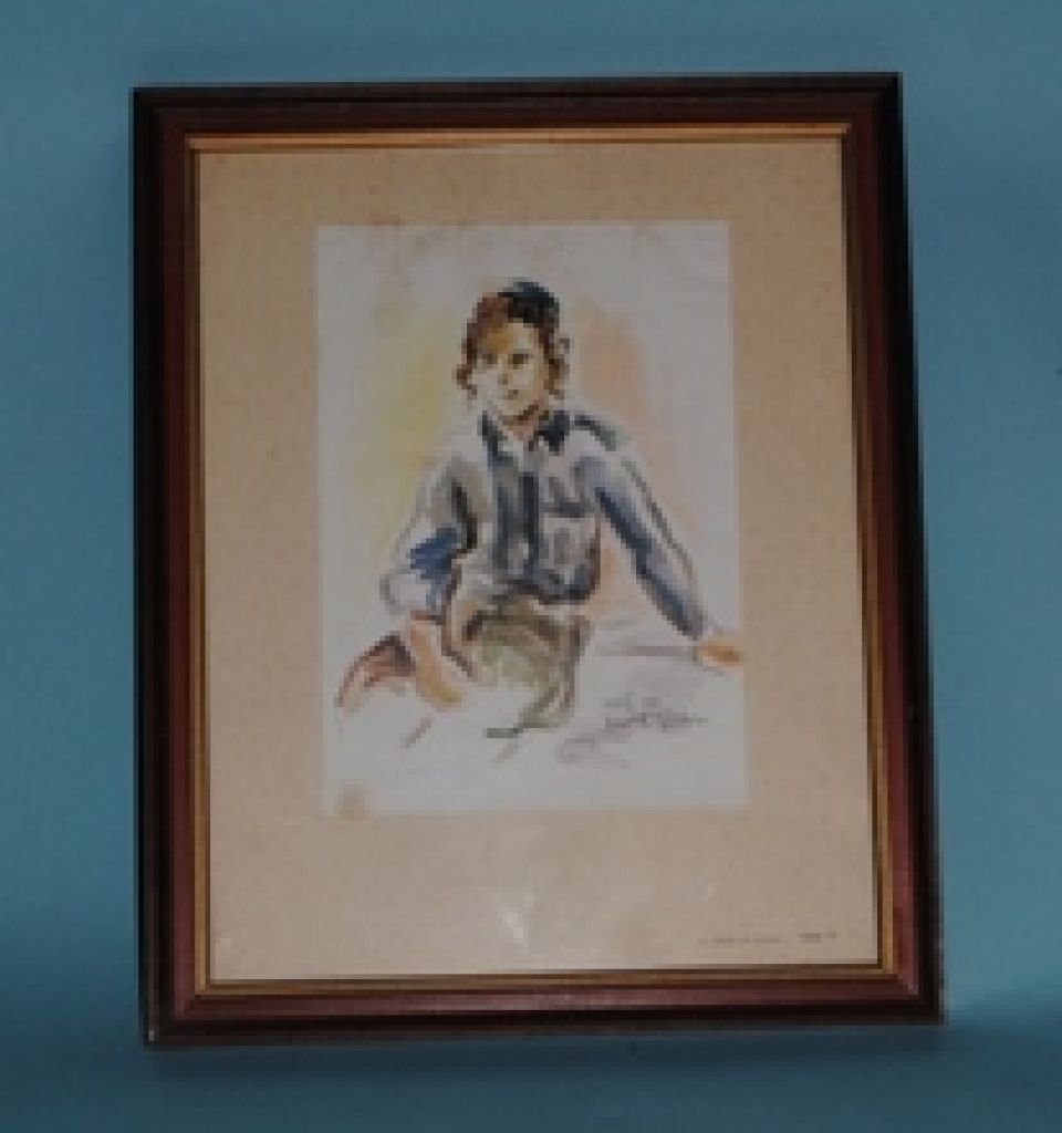 Print by David Gilboa of A Child of Safad. 12"w 15.5"h Frame.