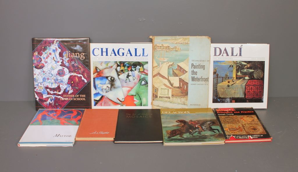 Chagall, Techniques of painting the waterfront, Dali, oil painting step by step, the art of making mosaics, Delacroix, mosaics principles and practice, Jiang father of the Yunnan School, Matisse. (9 total).