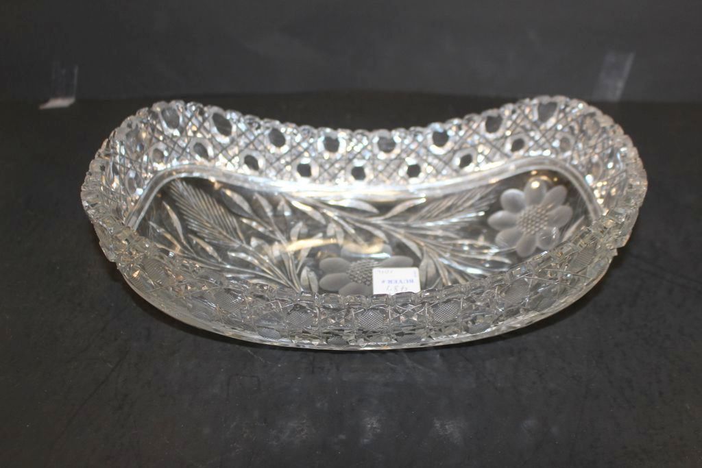 Brilliant cut glass rectangular bowl or banana boat with flowers; 11 1/4" wide