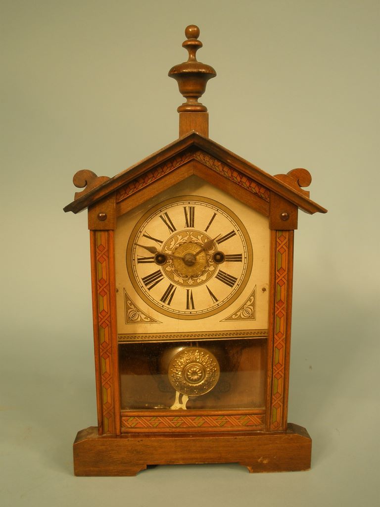 German time and strike clock w/inlay work, 14 1/2"h x 8"w