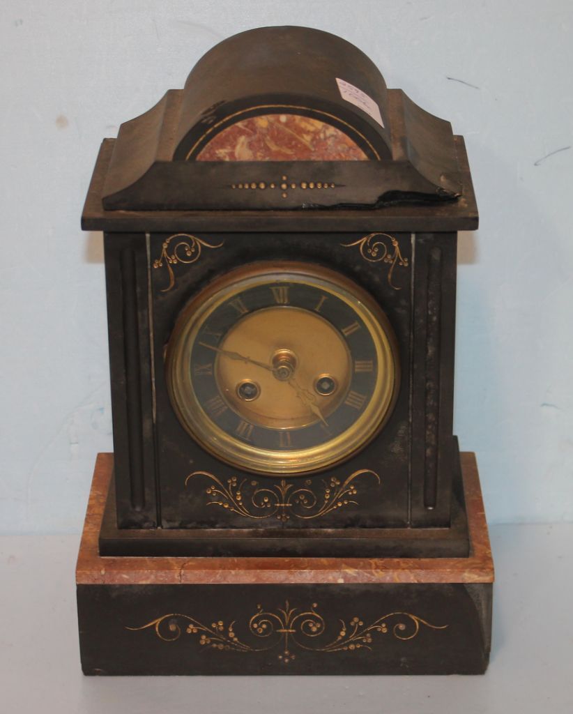 20th Century or Late 19th Century Slate Mantel Clock, chip on corner; 7" w., 12" h.