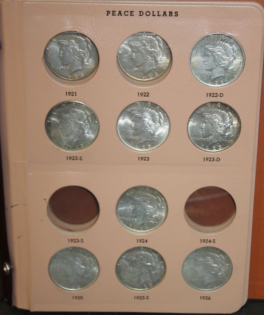 1921-1935 Peace Dollar album which contains 11 Peace dollar coins
