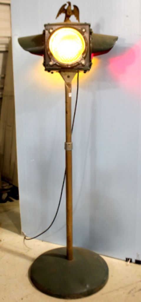 W.S. Darley & Company, Chicago Illinois. Four sided cast aluminum antique traffic light, on stand with eagle brass finial on top of light. 79" h.