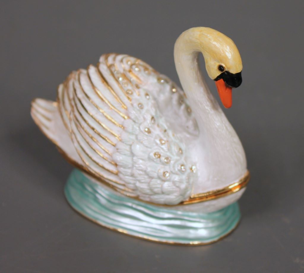 Nobility Enamel Swan. Opens as a box. 2 3/8"w., 2 1/4"h.