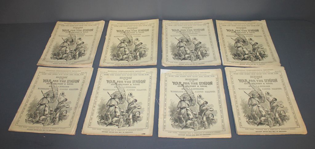 History war for Union Civil War by E.A. Duyckinck, Illustrated by Alonzo Chappel, Companion to the Battle of the United States, N.Y. 1862. Pages are unopened, they were intended to be bound, top pages still connected, having not been cut by the printer volumes 33-48. Some separation of top or last page.