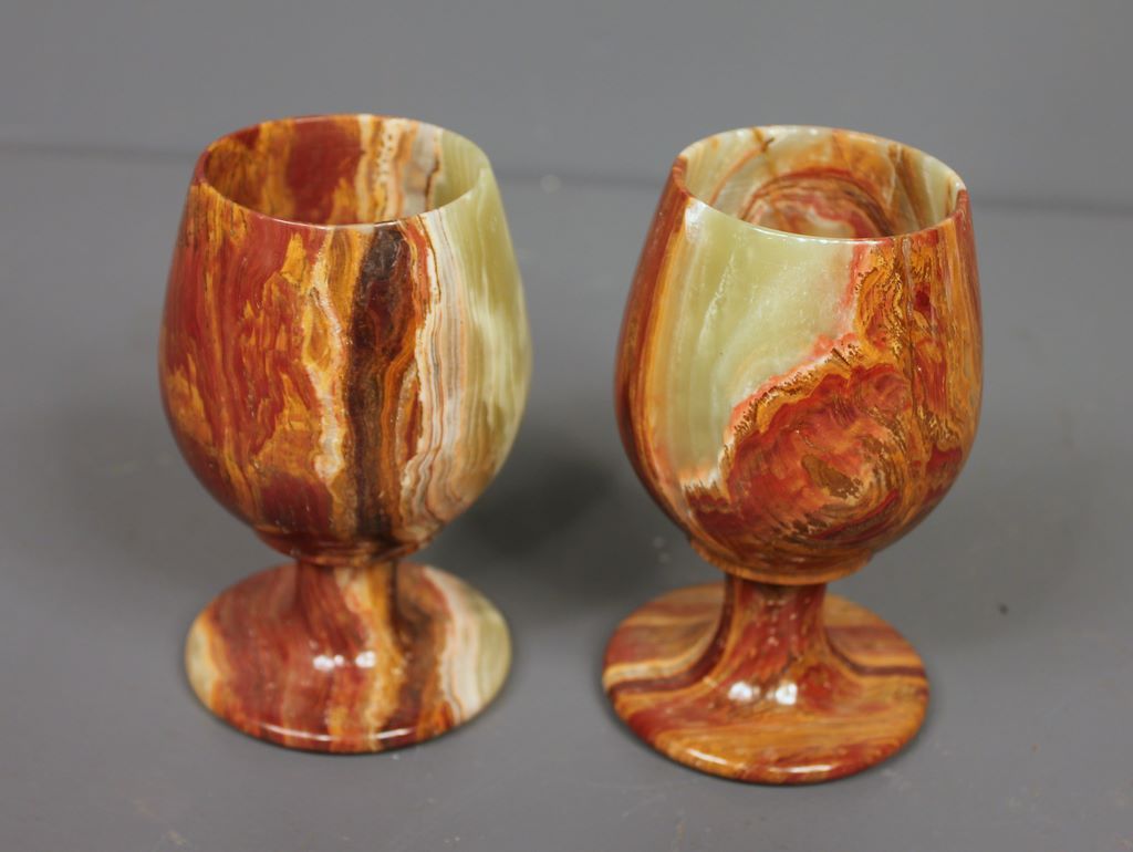 Pair of Green and Brown Marble Goblets