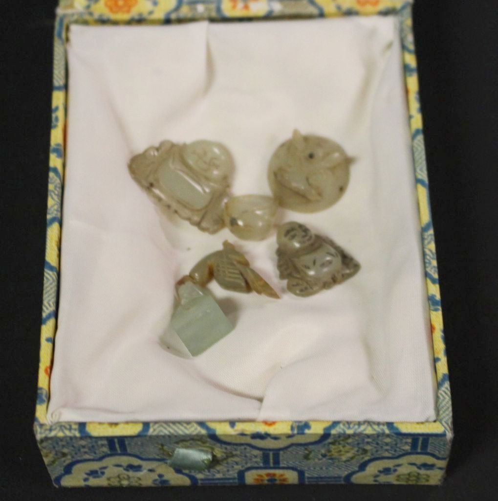 Various jade buttons in different sizes. Birds, fruit, dragon, and Buddha 1/2" dia.