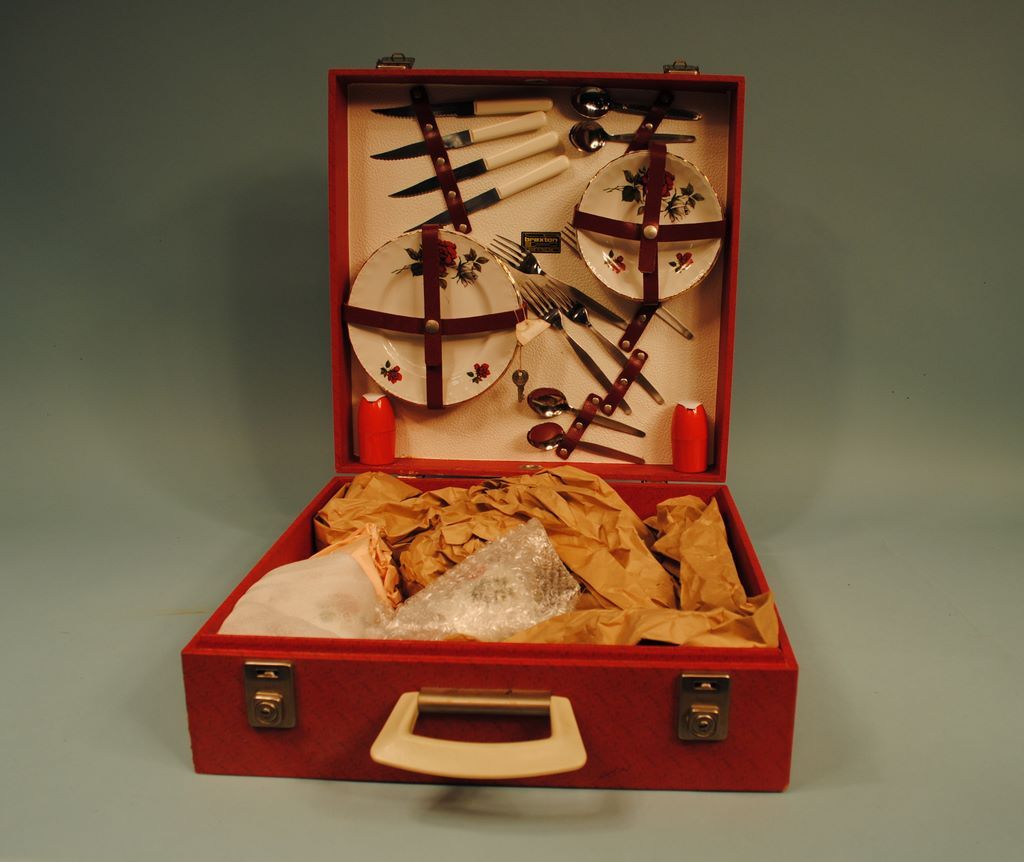 Service for four Brexton England porcelain set. Plates, cup and saucers, knives, forks, spoons