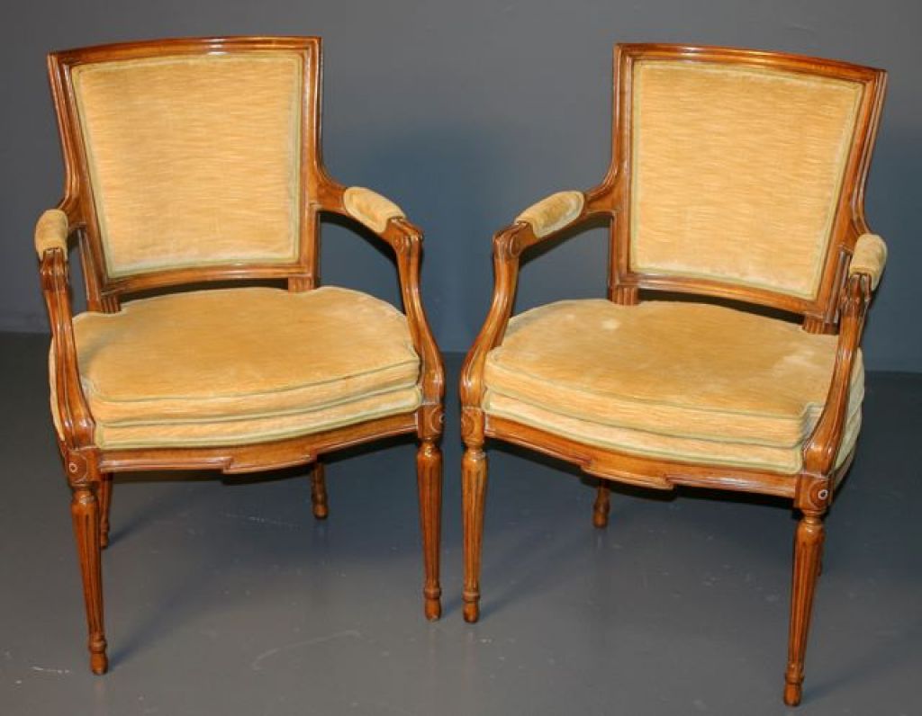 Pair of Walnut Louis XVI Style Arm Chairs
