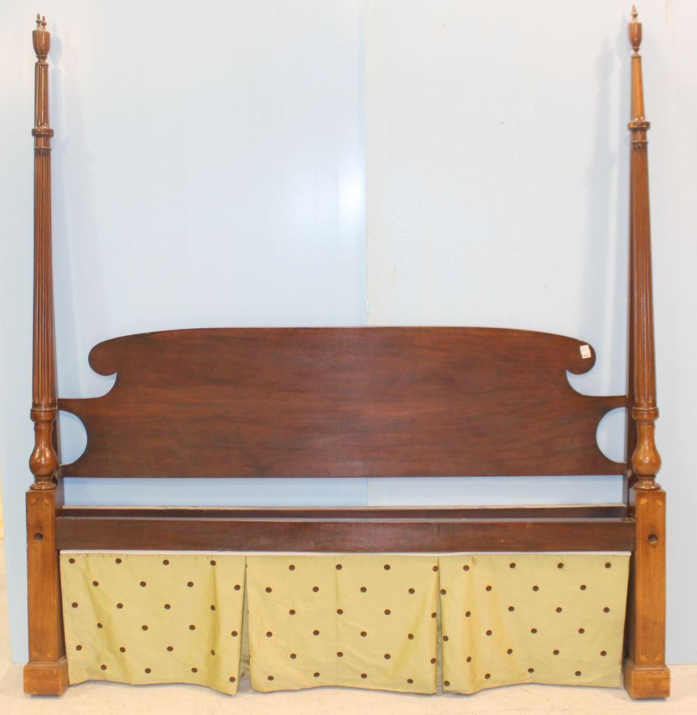 King size mahogany pencil post bed; 88" h.