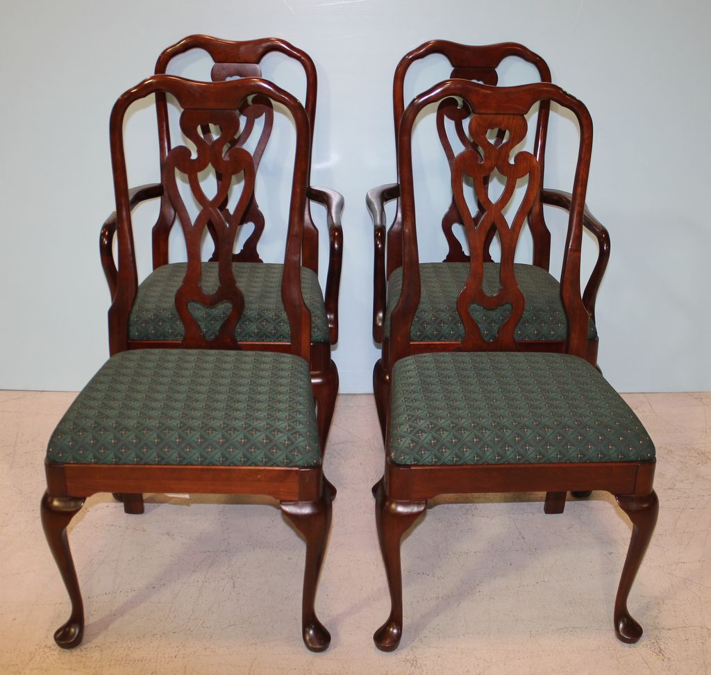 Set of Four Mahogany Contemporary Pennsylvania House Queen Anne Style Chairs, two arms, two legs; 22" w., 18" d., 40" h.