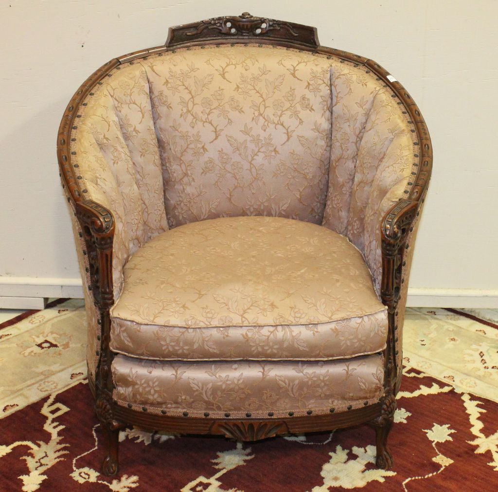 French Style Carved Barrel Back Chair