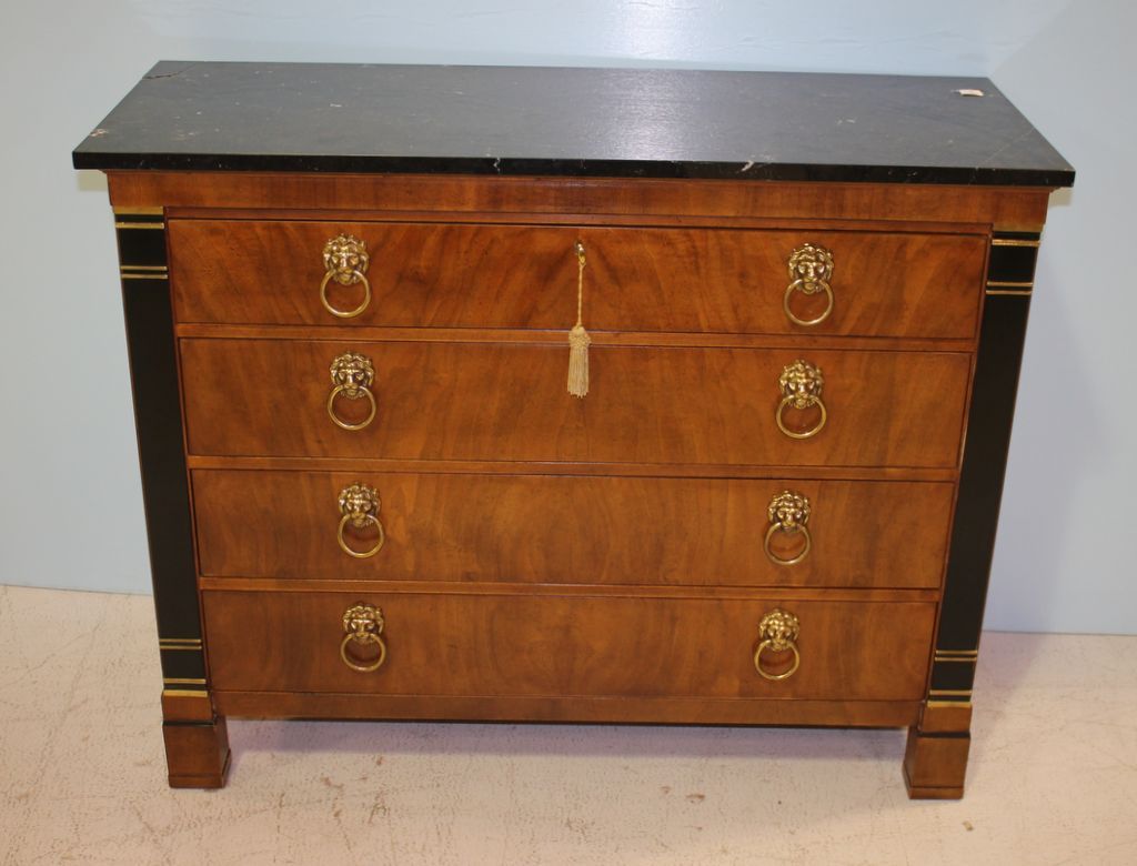 Heritage Four Drawer Chest with Black Marble Top; marble broken on one corner; 42" w., 16" d., 34" h.