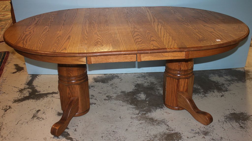 Oval Oak Dining Table with Two Leaves; 49" l., 35" h., 72" l. (with leaves), 48" w.