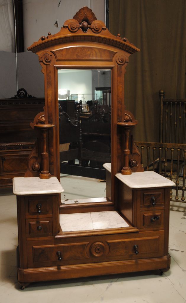 Victorian Walnut Marble Top Drop Center Dresser