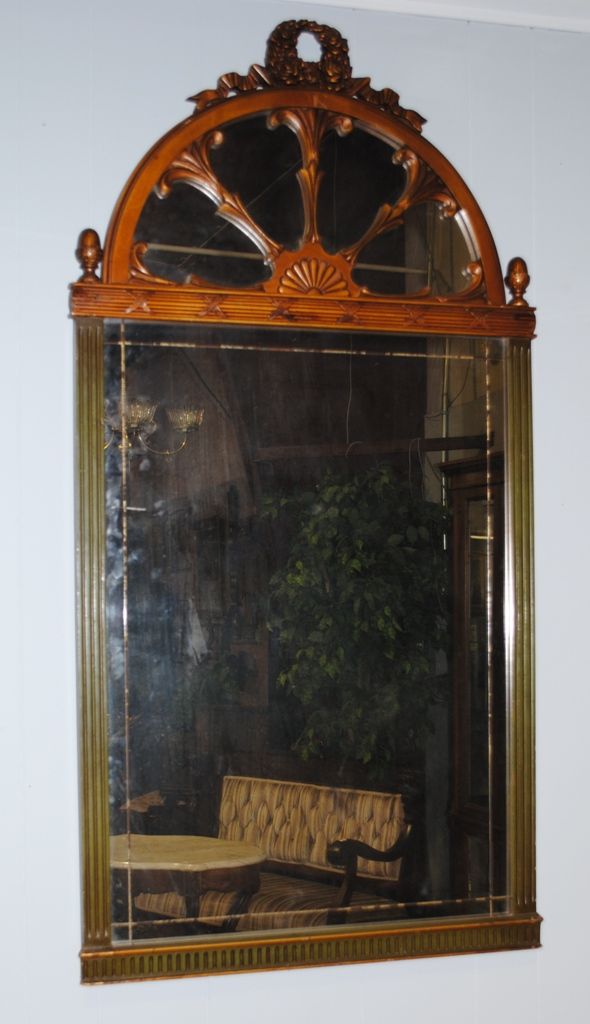 1920 painted green and gold, decorative over the mantel mirror, 26 1/2"w x 53 1/2"h