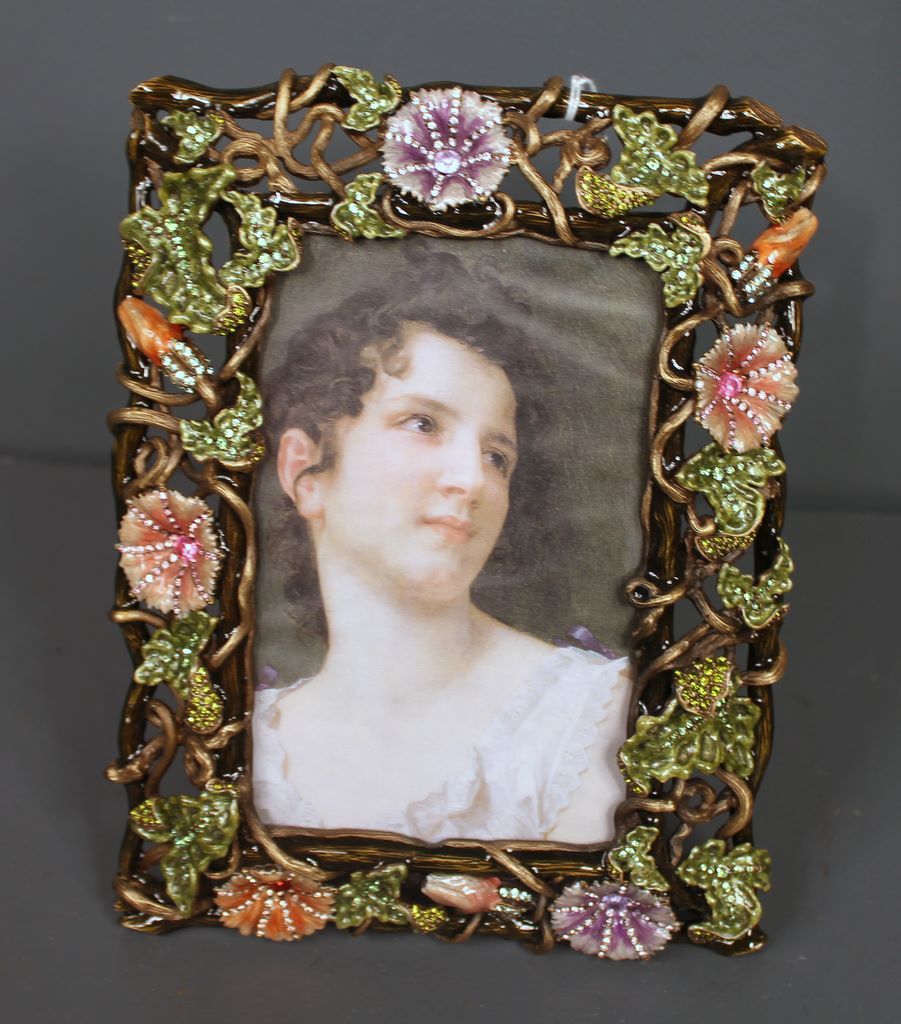 Jay Strongwater Limited Edition Frame with Enamel, Crystal in Morning Glory Border