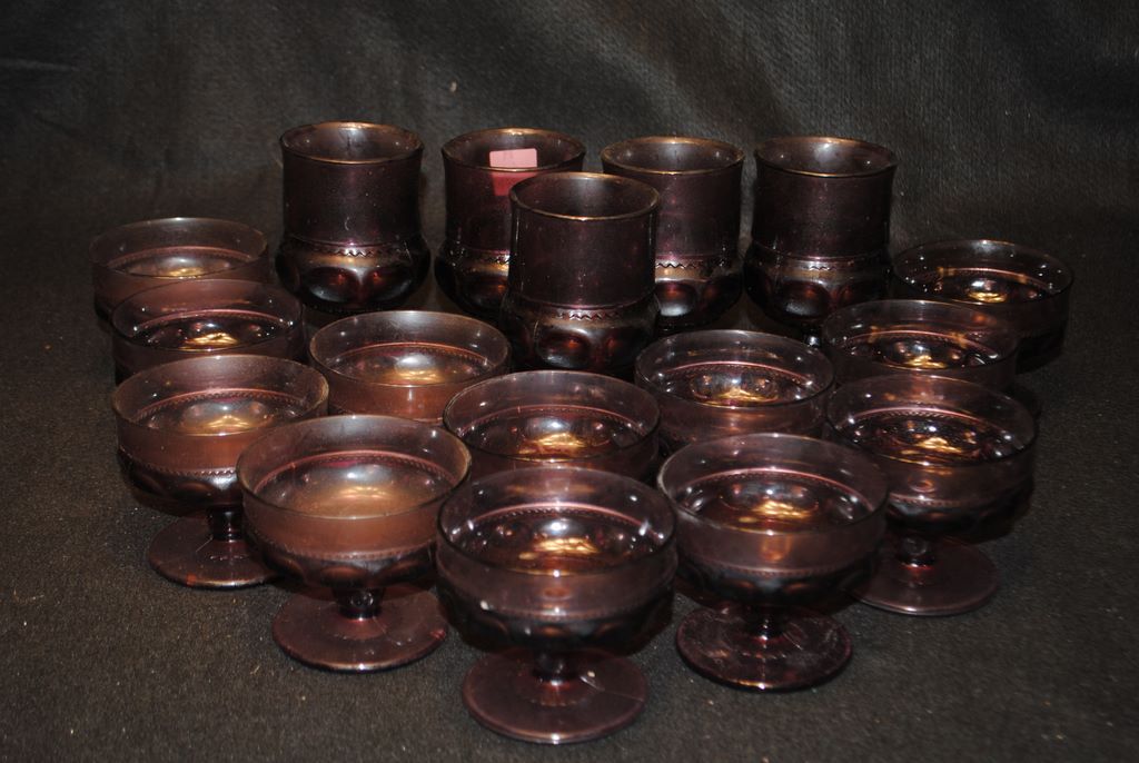 Set of 17 amethyst glasses. 5-6", 8-3 1/4"