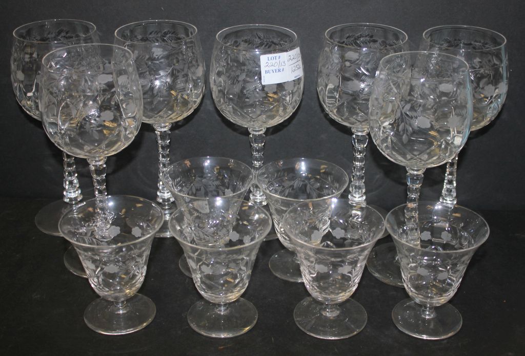 Seven wine glasses, six brandy glasses. Matches lot #215