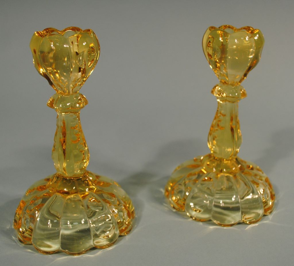 Pair Heisey Sahara "Old Sandwich" Candlesticks