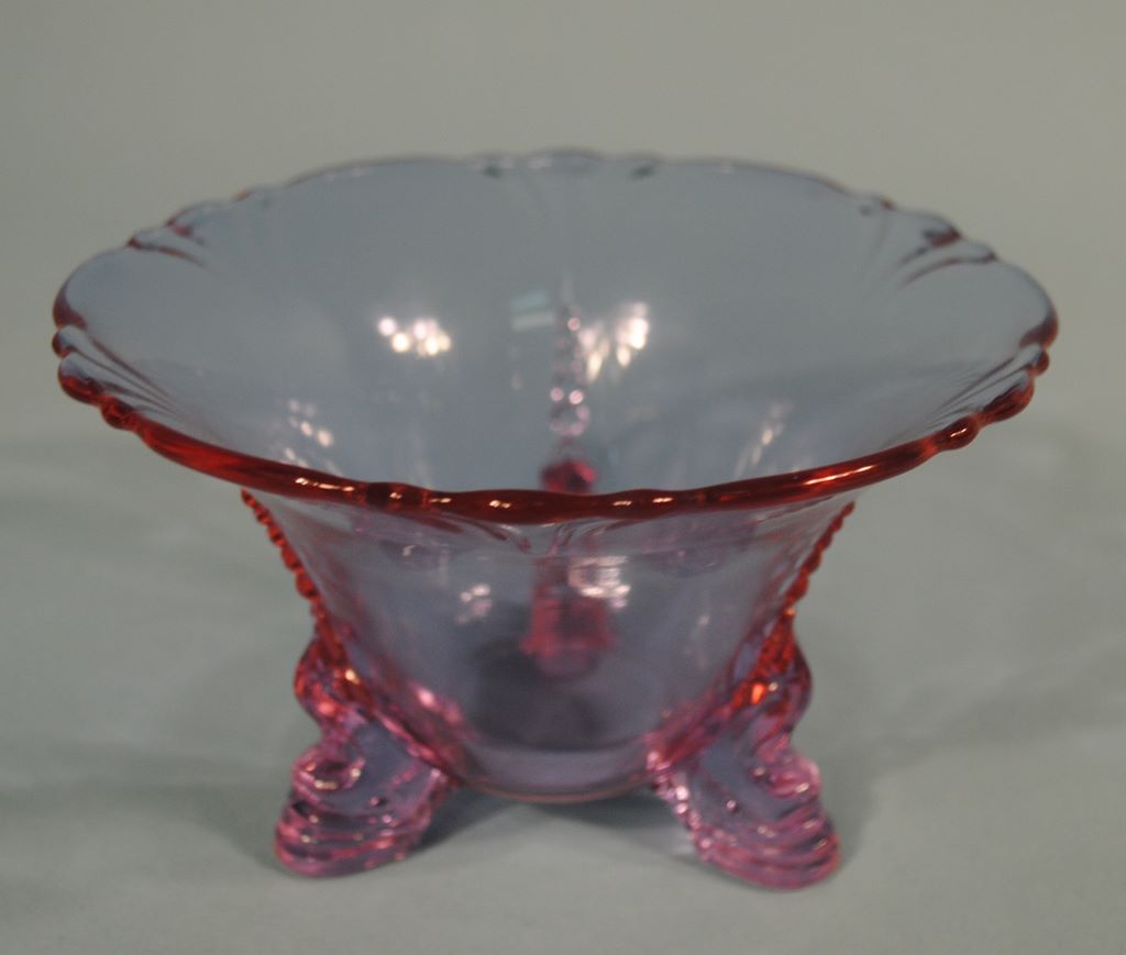 Heisey Alexandrite #1401 "Empress" dolphin-footed Mayonnaise Bowl, signed