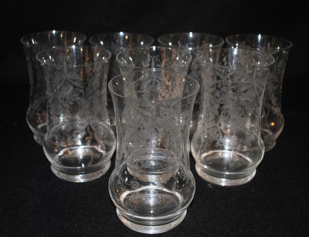 Set of 8 Heisey Crystal "Orchid" 5"h #3484 13oz iced tea tumblers w/spherical bases and curved sides