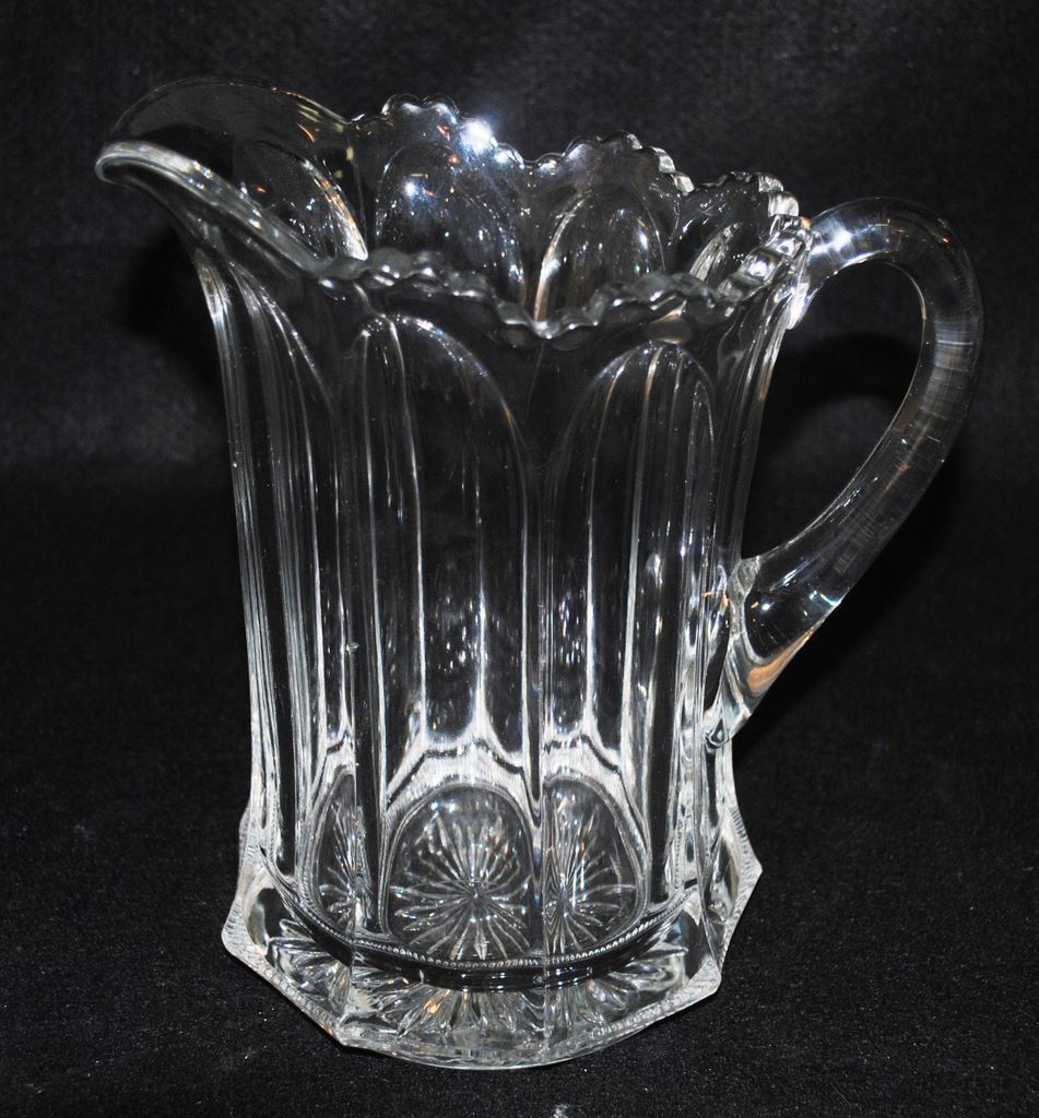 Heisey crystal Colonial "Peerless" 8 1/2" water pitcher, signed, with nicks/roughness to points around base