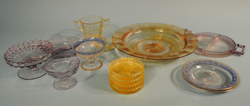 13 Piece Heisey: Decorated, Iridescent, Sun Purple, Sahara