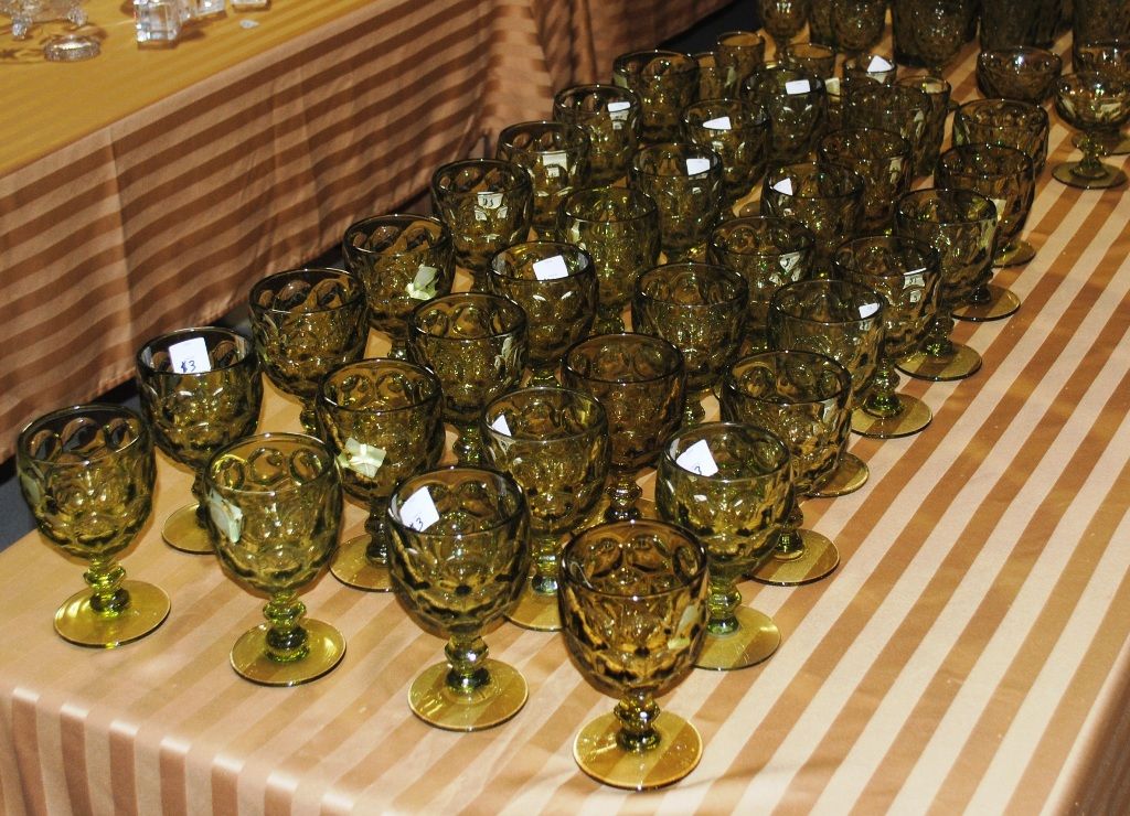 A collection of 56 pieces of Heisey's "Provincial" pattern, produced by Imperial after the purchase of Heisey molds in 1958, including 32-5 1/2" water goblets, 11-6" tumblers, 7-3 3/4" juice tumblers, 3-4" sherbets and 3-4 1/2" wines