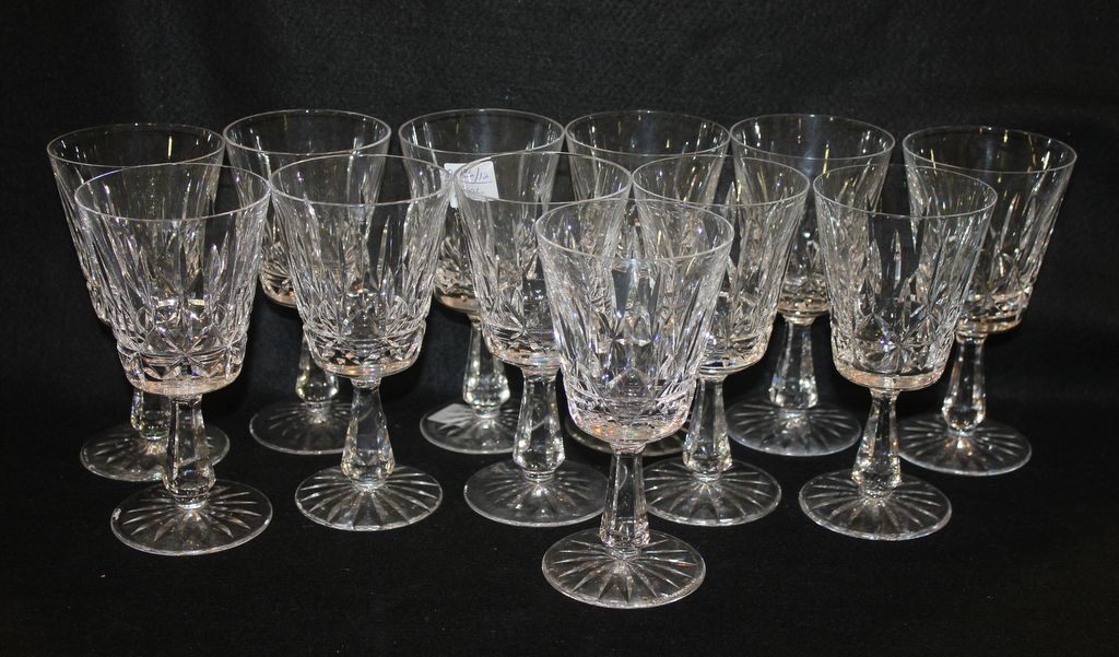Set of Twelve Signed Waterford Glasses; 7" h.