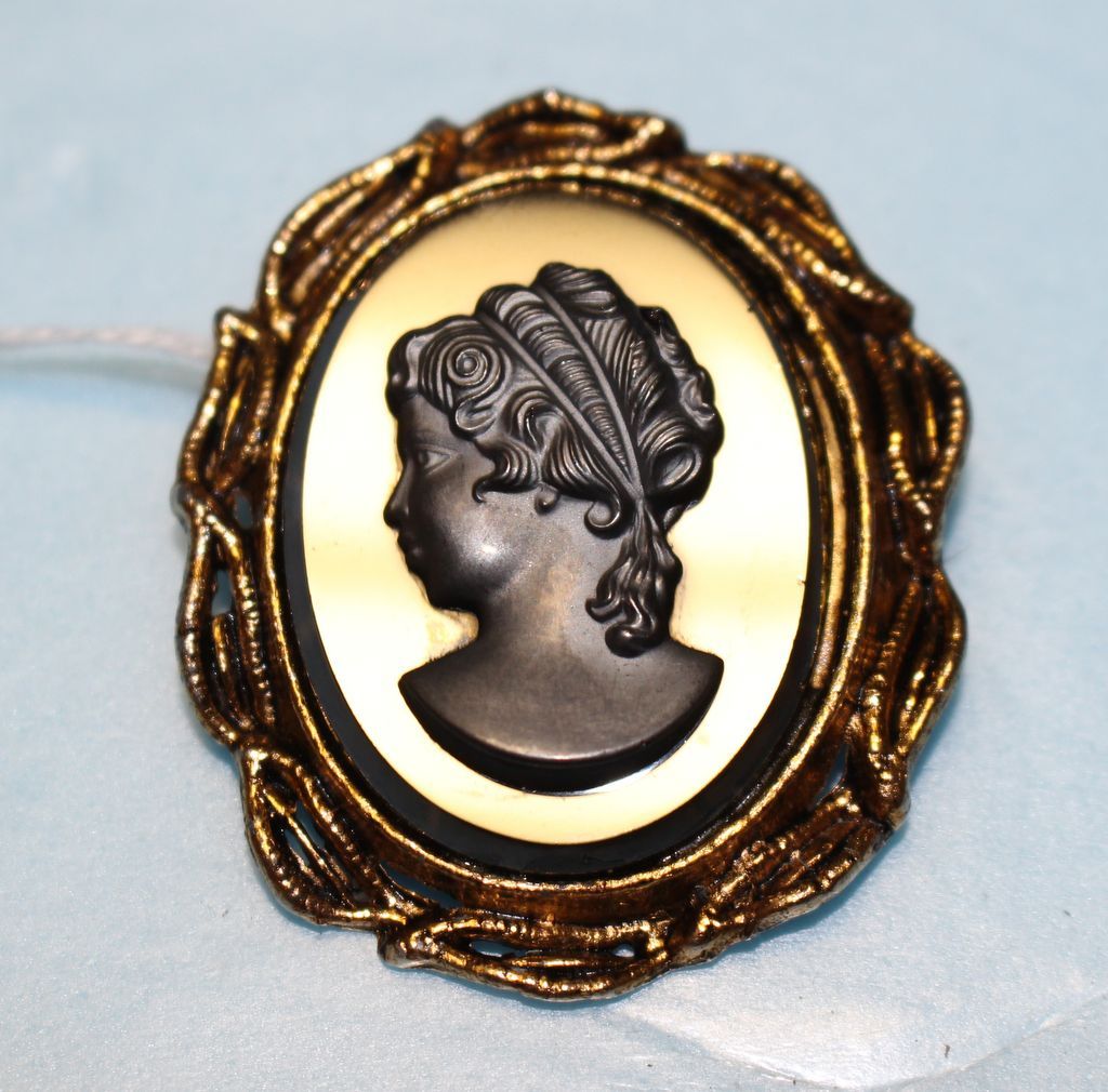 Vintage Black Glass Art Deco Cameo Brooch/ Pendant
