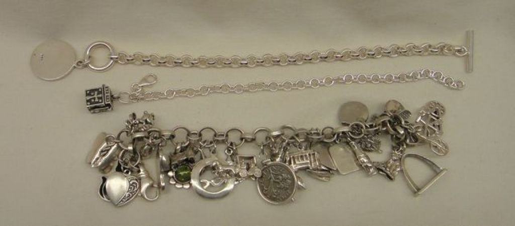 Three Sterling Lady's Charm and Link Bracelets; 3.69 ozt