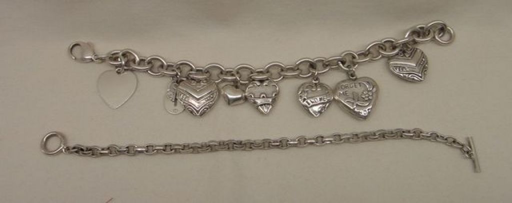 Two Sterling Lady's Charm and Link Bracelets; 1.7 ozt