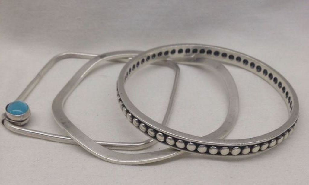 Three Sterling Silver Lady's Solid Bangle Bracelets