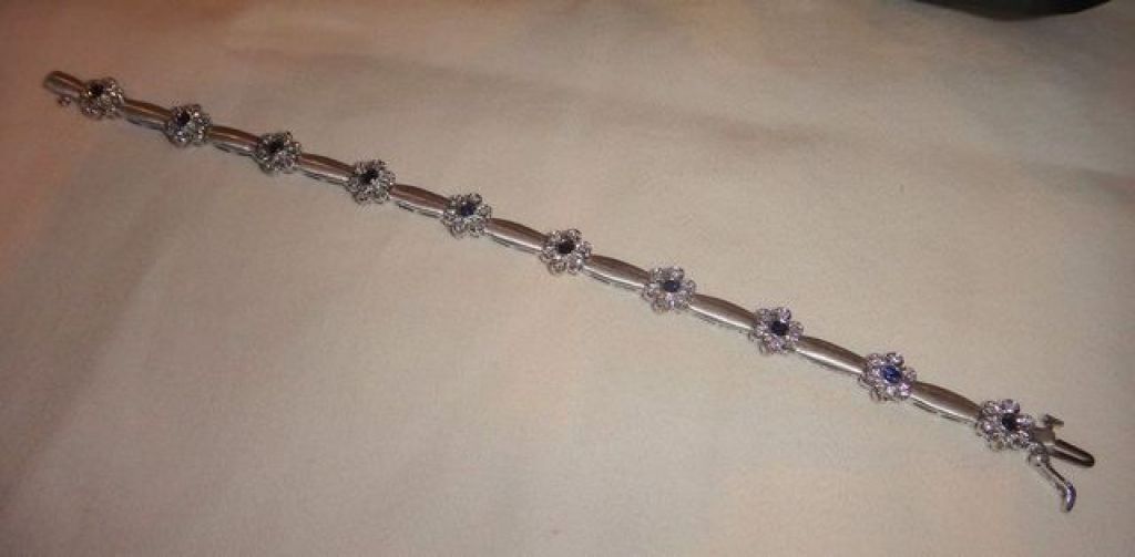 One stamped 14KT white gold lady's diamond and sapphire bracelet