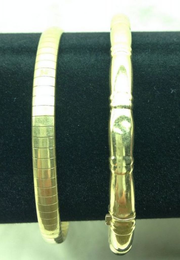 Two Stamped 14K Yellow Gold Lady's Bangle Bracelets with Bright Polish Finish