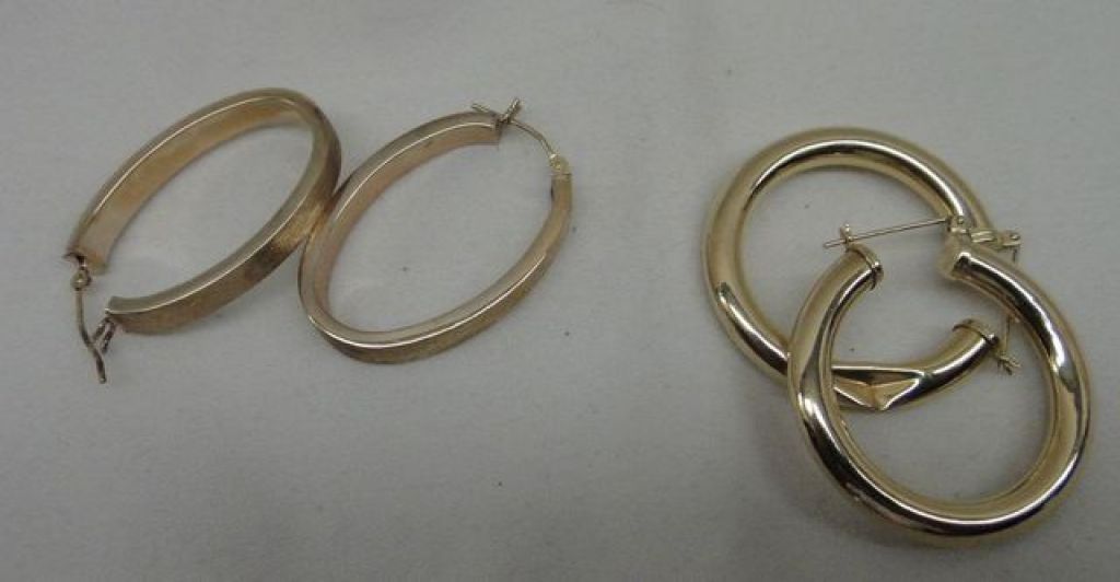 Two sets of stamped 10-14KT yellow gold lady's hoop earrings
