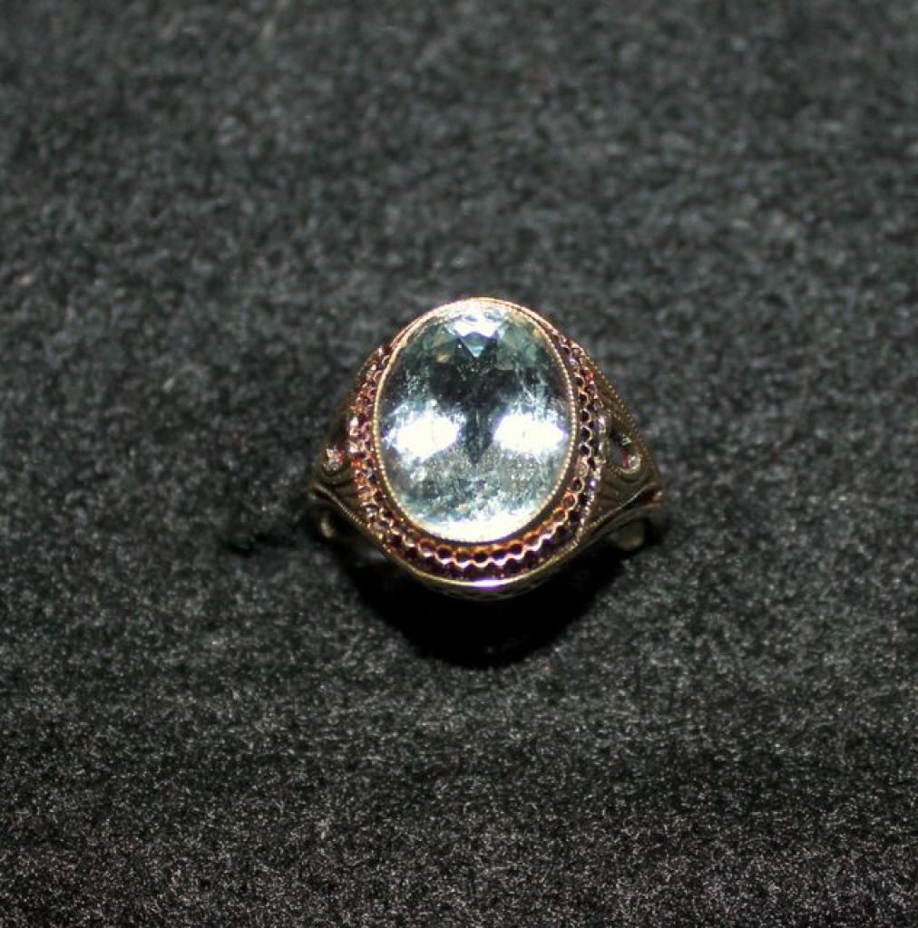 Ladies 14kt. Yellow Gold Ring with Oval Shaped Aquamarine Bezel Set